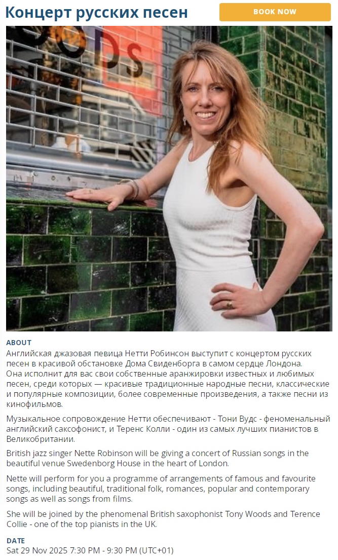 Page Internet. Swedenborg House, London. Nette Robinson. Концерт русских песен - Concert song of Russia. 2025-11-29