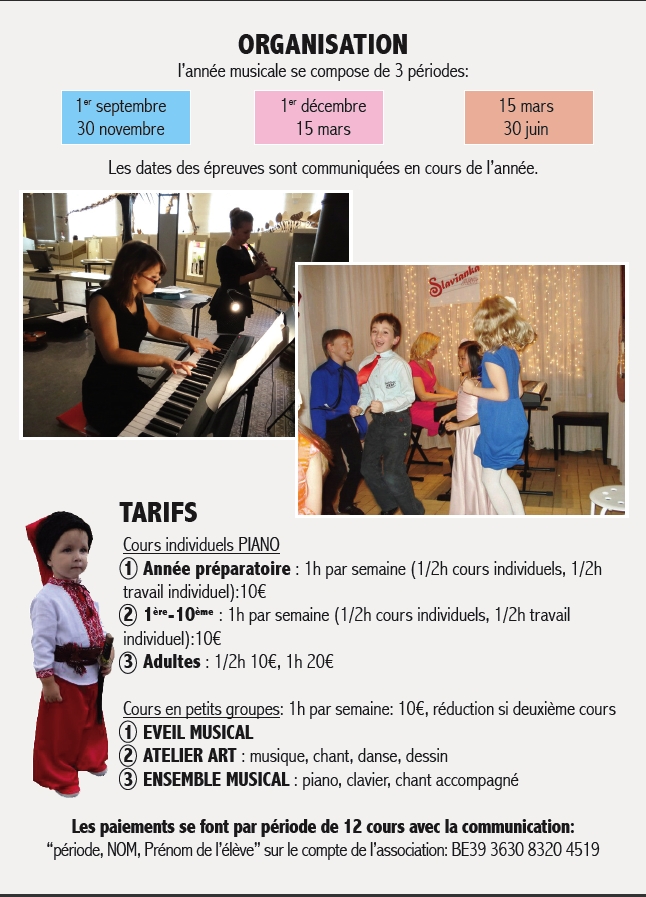 • Renseignements par téléphone : 0496 66 29 89 après 18 heures ou courriel : slavianka.art at hotmail dot com
